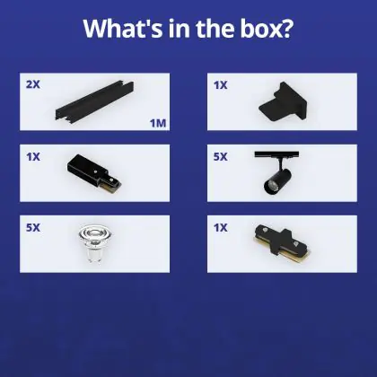 Komplettset 1-Phasen Rail 2 Meter Schwarz | incl. 5x Spot + GU10 2700K 3W Dimmbar + Abschlusskappe, Stromanschluss und I-Verbinder