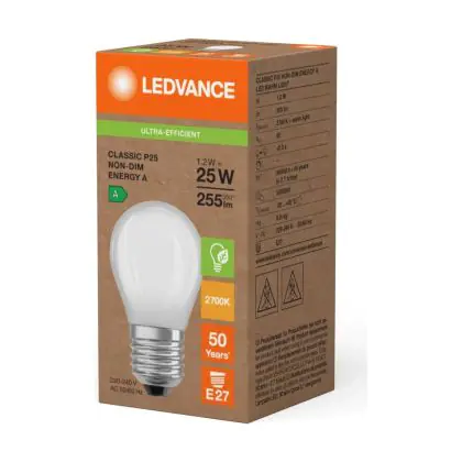 | Herstellername | LED CLASSIC P ENERGY EFFICIENCY A S 1.2W 827 Frosted E27 | |