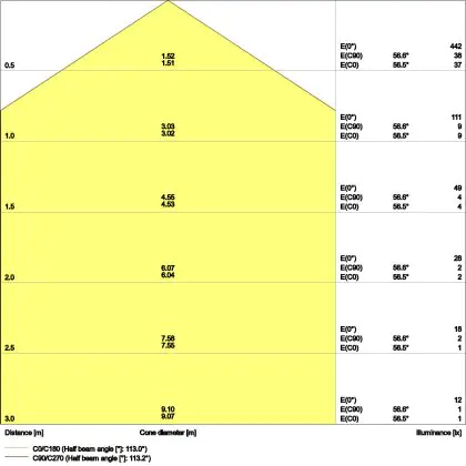 Der Abstrahlwinkel bezeichnet den Winkel, in dem das Licht aus der Lichtquelle ausgestrahlt wird. Er wird in Grad (D) angegeben. Je geringer die Gradzahl des Abstrahlwinkels ist, desto kleiner ist auch der Durchmesser des Lichtkegels, den die Lichtquelle produziert.