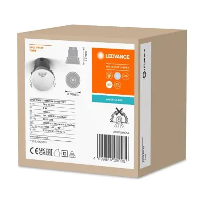 | Herstellername | LED SPOT RECESS TWIST PRO 70mm 5W 4000K White White | |