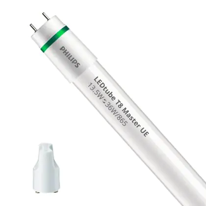 Bei der Philips LED Röhre 120cm | 6500K 13.5W - Master UE handelt es sich um eine energieeffiziente LED-Röhre. Sie ersetzt Ihre konventionelle Leuchtstoffröhre mit 36W. Die Röhre ist 1200 mm lang und hat die Farbtemperatur 6500K - Tageslichtweiss. Die durchschnittliche Lebensdauer der LED-Röhre beläuft sich auf 75000 Stunden. Wir bieten Ihnen für dieses Produkt eine Garantie von 5 Jahre an.