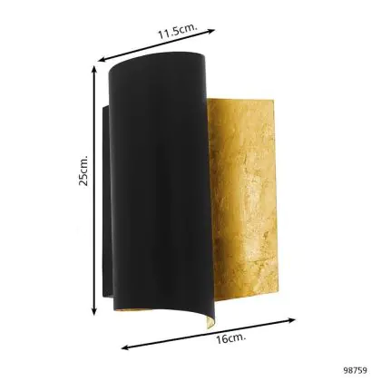 Eglo Applique Murale Falicetto Noir, Dorée | Convient pour E27