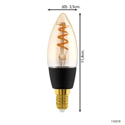 Cette ampoule Eglo Connect.Z Smart LED Bougie E14 Filament Ambre 4.9W 320lm - 827-865 Accordable Blanc | Dimmable - Remplacement 25W avec son efficacité lumineuse de lumen par watt vous permettra de profiter d’un éclairage de qualité. Avec sa durée de vie de 15000 heures, vous n’aurez pas à vous soucier de son remplacement avant quelques années.