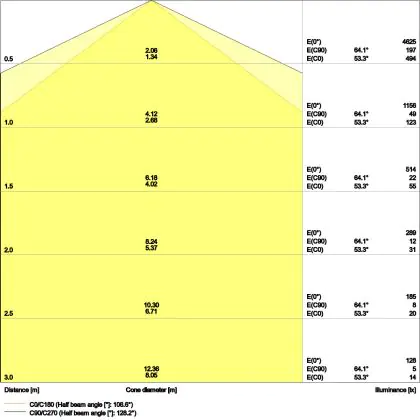 Le code couleur se compose de l'indice de rendu des couleurs (IRC) et de la température de couleur (Kelvin). Le premier chiffre indique le rendu des couleurs (1 = très mauvais rendu des couleurs, 9 = meilleure authenticité des couleurs). Le deuxième et troisième chiffre indiquent la température de la couleur. Exemple : Le code couleur "830" indique que la lampe a un bon rendu des couleurs (8) et une couleur de lumière blanche chaude (30 = 3000K). |