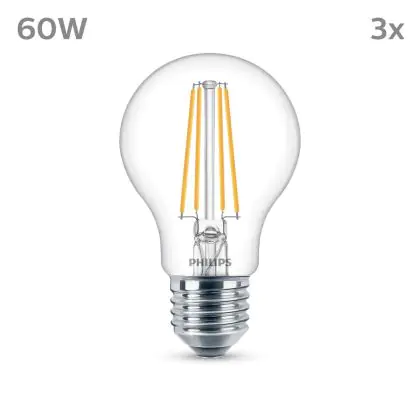 Description Lot 3x Philips Ampoule LED E27 Poire Filament Claire 7W 850lm - 840