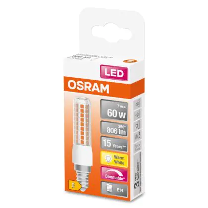 Cette ampoule Osram Special T LED E14 Claire 6.5W 806lm - 827 | Dimmable - Remplacement 60W est l’alternative idéale pour la remplacement de votre ampoule classique de 60 W. La technologie LED intégrée vous offrira de nombreux avantages. Les ampoules à incandescence traditionnelles ont une durée de vie limitée. Cette alternative LED vous permettra de profiter d’un éclairage durable et fiable.