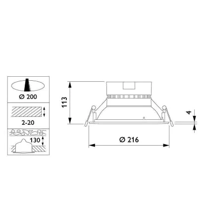 Description Philips Spot encastrable LED Coreline DN130B 22W 2000lm 120D - 830 | 216mm - Dali Dimmable