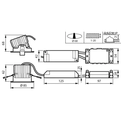 La découpe d'un luminaire diffère des dimensions et fait spécifiquement référence à la taille du trou dans le plafond nécessaire pour fixer solidement la source lumineuse lors de l'installation.
